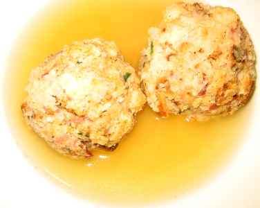 "Fondere 10 grammi di burro, aggiungere mezza cipolla tritata e farla appassire, togliere dal fuoco, quindi amalgamarvi le uova, il sale, la noce moscata ed un cucchiaio di prezzemolo tritato. Nel frattempo, in una ciotola con del latte, precedentemente scaldato, immergere la mollica di pane. Dopo po...