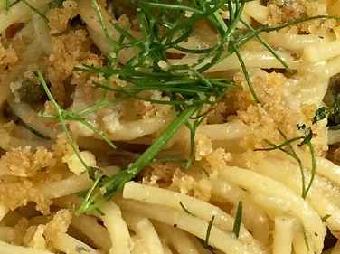 - Scolare la pasta e versarla nella padella con il condimento, tenendo da parte un bicchiere di acqua di cottura che utilizzerete per stemperare ulteriormente, se necessario, la crema di ricotta.
