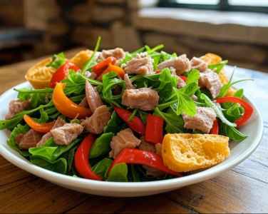 INSALATA CON PEPERONI, TONNO E CROSTINI