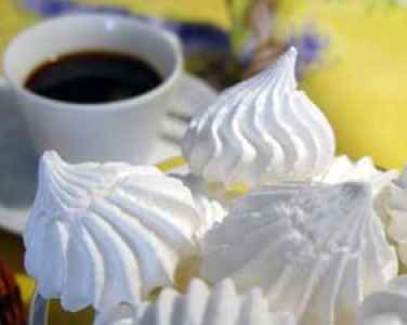 Finire di montare a neve ben ferma gli albumi, riempire una sacca da pasticcere e formare tante "nuvole" su una placca da forno ricoperda di carta da forno.